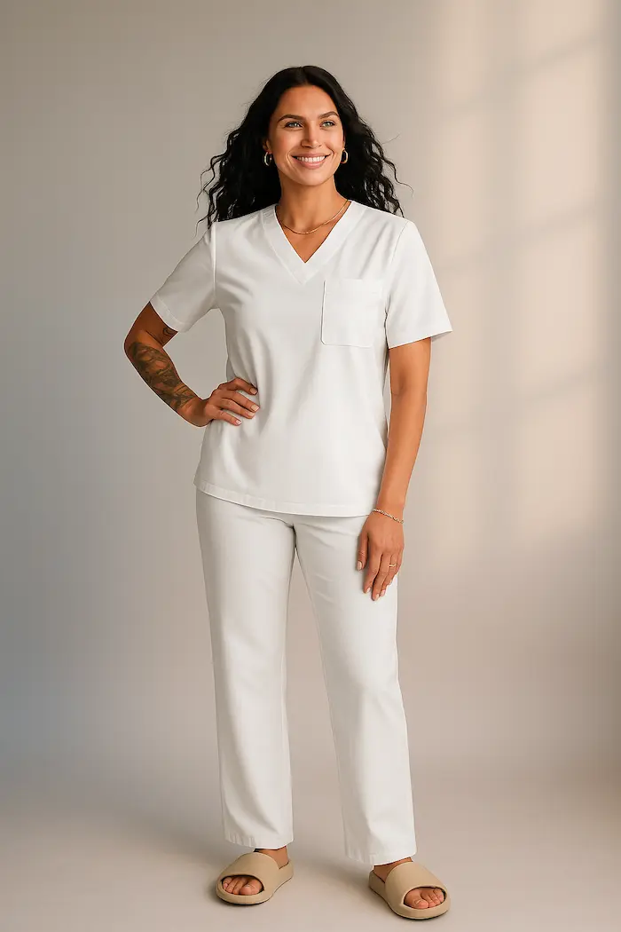 Bluzka Auria została stworzona dla osób pracujących w ciągłym ruchu, które chcą czuć się komfortowo, a jednocześnie elegancko. To doskonały wybór dla lekarzy, kosmetologów, weterynarzy oraz wszystkich profesjonalistów, którzy dbają o swój wizerunek w pracy.