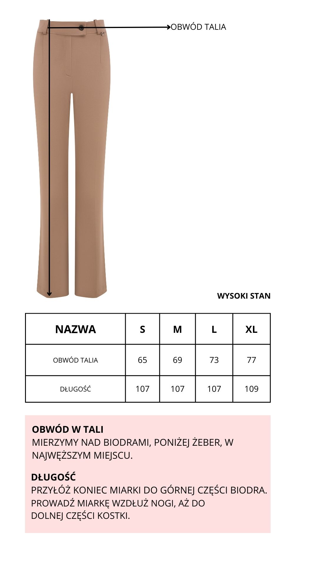 optycznie wydłuża nogi, nadając sylwetce zgrabności i lekkości. Elastyczna talia